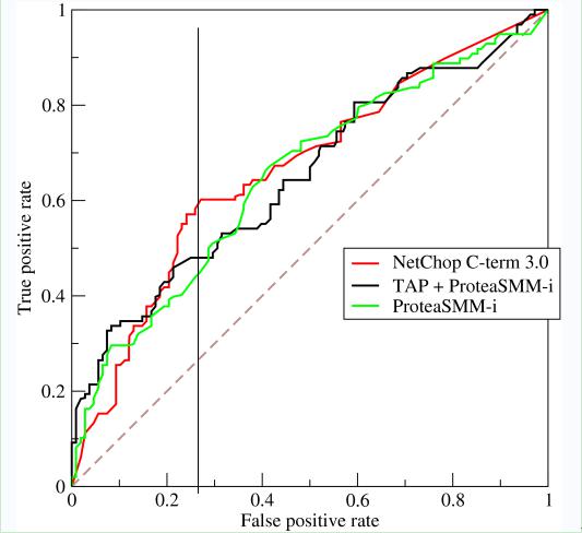 如上,是三条ROC曲线,在0.23处取一条直线。那么,在同样的FPR=0.23的情况下,红色分类器得到更高的TPR。也就表明,ROC越往上,分类器效果越好。我们用一个标量值AUC来量化他。